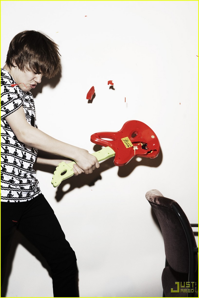 Kicsit később a srác tovább folytatta. „Szerintem én vagyok az egyetlen olyan 16 éves srác ezen a világon, akin a nap 24 órájában rajta lóg az anyja!” – mesélte. Anyu nyilván minden lépését meg is vétózza, ami persze Justinnak nem jön be. Kezdésnek az énekes el akart vállalni néhány olyan fotózást, ahol nem éppen aranyos kisfiúként kell feszítenie. Az Interview magazinban például kifejezetten „csajozós” tekintettel pózolt, de akkor sem jött zavarba, amikor szét kellett vernie egy gitárt. A srácnak most már bőven elege van a kisfiús imidzsből, ami már csak azért is gáz, mert anyu viszont imádja ezt. Természetesen ősis elkíséri csemetéjét a fotózásra, és kiborul, amikor a kisfiából rockert akarnak faragni a „gonosz” fotósok.